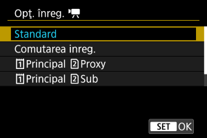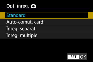 Opţ. înreg.] la [Standard] şi selectaţi cardul cu spaţiu liber.