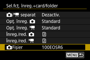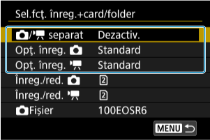 Selectaţi [Activare] pentru configurare automată a metodei de înregistrare pentru fotografii şi filme. Filmele sunt înregistrate pe cardul şi fotografiile pe cardul