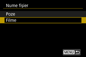 Configurare setări Nume fişier film.
