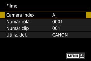 - Setaţi valorile implicite pentru [Număr rolă] şi [Număr clip] aşa cum aveţi nevoie.