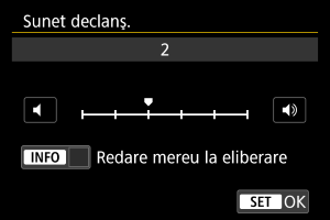 : Mod declanşator], cu [Redare mereu la eliberare] selectat în setările [Sunet declanş.].