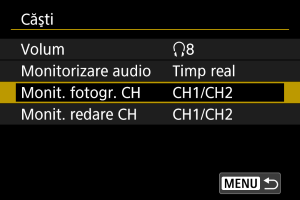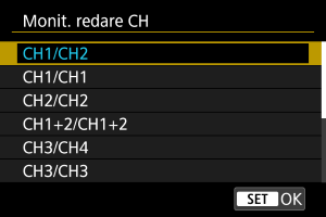 Selectaţi [Monit. fotogr. CH] sau [Monit. redare CH].
