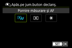 Specificaţi funcţia realizată dacă apăsaţi butonul declanşator până la jumătate.
