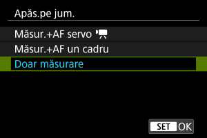 Dacă apăsaţi butonul declanşator până la jumătate începe măsurarea. Pentru a focaliza, apăsaţi butonul