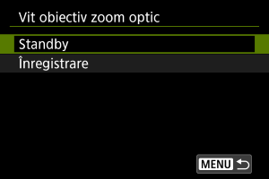 - Acest meniu nu este afişat pentru obiectivele cu un comutator pentru inelul de focalizare/control. Utilizaţi obiectivul pentru a configura funcţionalitatea inelului de focalizare/control.