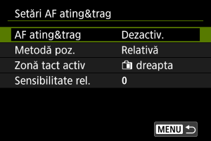 Selectaţi [Activare] pentru a activa AF ating&trag.