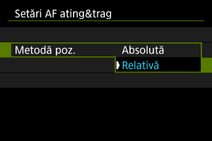 Punctul AF se mişcă în poziţia în care trageţi degetul, cu o valoare care corespunde valorii cu care aţi mişcat degetul, indiferent unde atingeţi ecranul.