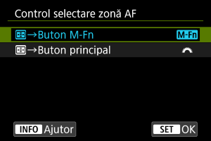 Puteţi seta cum sunt schimbate metodele de selectare a zonei AF.