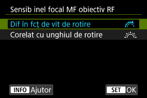 Puteţi seta sensibilitatea pentru inelul de focalizare pentru obiective RF.