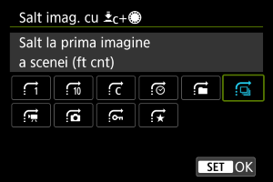Pentru a seta cum sare aparatul printre imagini, puteţi roti în timp ce ţineţi apăsat butonul alocat la [