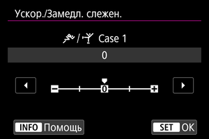 Можно вручную настраивать параметры ((1) Чувствит. слежения и (2) Ускор./Замедл. слежен.) для случаев с 1 по 4.