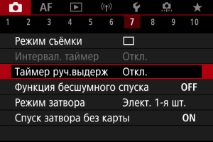 - При переключении режимов съемки таймер ручной выдержки сбрасывается (и для него устанавливается значение [Откл.]).
