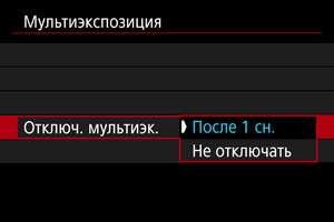 - В случае [Не отключать] съемка с мультиэкспозицией продолжается, пока настройка на шаге 2 не будет изменена на [Откл.].