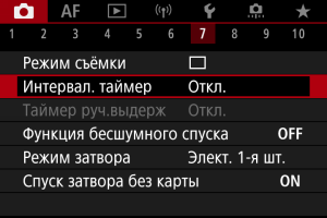 - Во время съемки с таймером временных интервалов невозможно выполнять Съемка с дистанционным управлением или дистанционным спуском затвора со вспышкой Speedlite.
