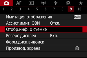 Можно настроить сведения и экраны информации, отображаемой на экране или в видоискателе при съемке.