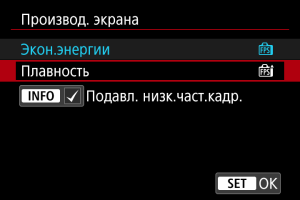 - Некоторые условия съемки и операции камеры могут препятствовать плавному отображению с высокой частотой кадров, даже если установлено значение [Плавность].