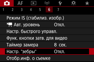 Для помощи в настройке экспозиции перед видеосъемкой и во время ее можно включить отображение полосатого узора на областях с указанной яркостью или вокруг них.