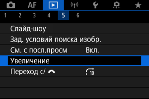 Увеличение при просмотре начинается в точке AF, обеспечившей фокусировку. Если фотография снята с ручной фокусировкой, увеличение при просмотре начинается от центра экрана.
