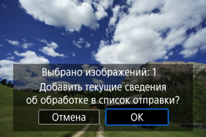 Когда появится сообщение об удалении изображений из списка загрузки, выберите [OK].