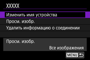 При удалении информации о соединении для зарегистрированного смартфона также удалите информацию о камере в смартфоне ().