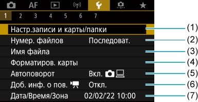 - (1) Настр.записи и карты/папки