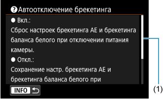 , можно открыть описание функции. Снова нажмите эту кнопку, чтобы закрыть справку. Если справа отображается полоса прокрутки (1), экран можно прокручивать диском