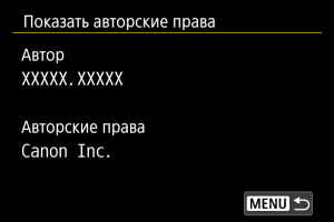 - Если запись в полях «Автор» или «Авторские права» слишком длинная, при выборе [Показать авторские права] она может отображаться не полностью.