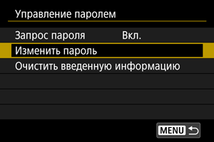 Можно изменить пароль, который должен вводиться при установке переключателя питания в положение или при возобновлении работы камеры после автоматического отключения питания.