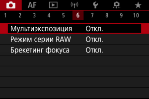 Во время съемки с мультиэкспозицией функция автоотключения не работает. Обратите внимание, что перед началом съемки с мультиэкспозицией может автоматически сработать автоотключение питания через время, заданное в параметре [Автоотключение] меню [