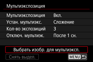 При нажатии кнопки отображаются операции, доступные при съемке с мультиэкспозицией.