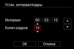 Установите интервал съемки и количество кадров.