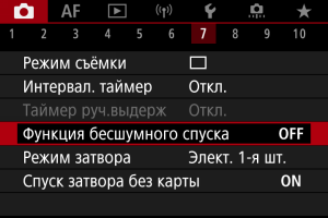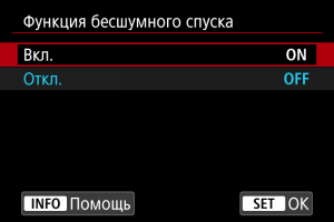 Отключает звуки срабатывания затвора, звуки работы, а также срабатывание и включение вспышки и других источников света.