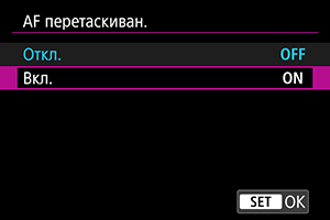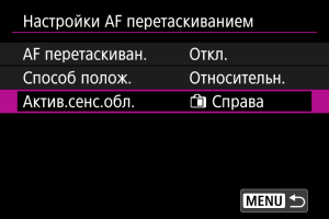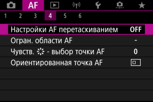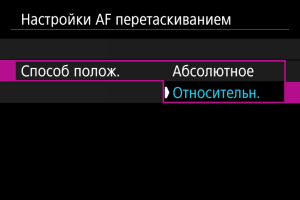 Точка AF перемещается в направлении перетаскивания на величину, соответствующую расстоянию перетаскивания, независимо от места касания экрана.