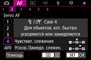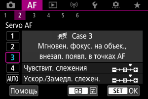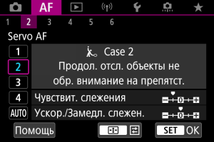В следующих ситуациях вместо этой настройки выбирайте настройки [Case 2] – [Case 4]: посторонние предметы перемещаются по точкам AF, ускользающие объекты или объекты, которые внезапно появляются или изменяют скорость.