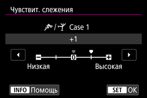 Можно вручную настраивать параметры ((1) Чувствит. слежения и (2) Ускор./Замедл. слежен.) для случаев с Case 1 по Case 4.