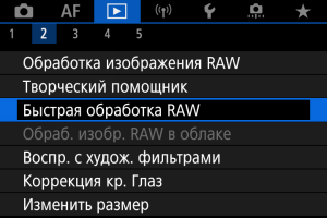 На экране быстрого управления можно выбрать тип выполняемой обработки изображений RAW.