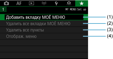 Меню вкладки: Мое меню