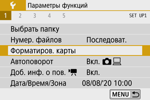 Новую карту памяти или карту памяти, ранее отформатированную (инициализированную) в другой камере или в компьютере, необходимо отформатировать в этой камере.