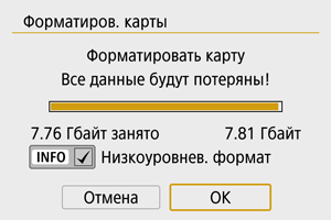 Во время низкоуровневого форматирования его можно отменить, выбрав [Отмена]. Даже в этом случае обычное форматирование будет уже завершено и карту можно будет использовать обычным образом.