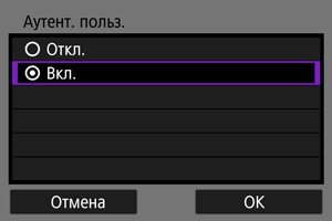 Камера поддерживает следующие варианты для пунктов [Аутентификац.] и [Настройки шифрования]. По этой причине для шифрования, используемого точкой доступа, должно быть задано одно из следующих значений при подключении вручную к обнаруженным сетям.