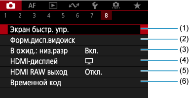 - (1) Экран быстр. упр.