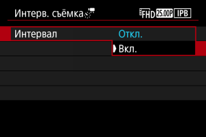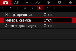 - Чтобы отменить интервальную съемку, задайте для параметра [Интервал] значение [Откл.].