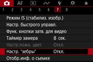 Для помощи в настройке экспозиции перед видеосъемкой и во время ее можно включить отображение полосатого узора на областях с указанной яркостью или вокруг них.