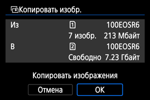 - Проверьте информацию об исходной и конечной картах, затем выберите [OK].