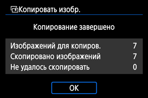 - После завершения копирования отображаются результаты. Выберите [OK], чтобы вернуться к экрану из шага 2.