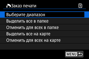 При выборе [Отменить для всех на карте] отменяется заказ печати для всех изображений с этой карты памяти.