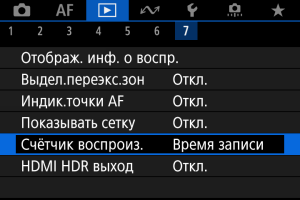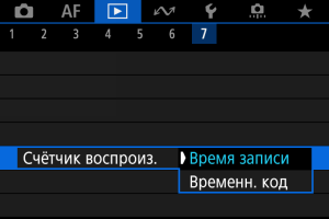 • Настройка [Счётчик воспроиз.] в меню [Съемка: Временной код] связана с настройкой [Просмотр: Счётчик воспроиз.], поэтому эти значения всегда совпадают.