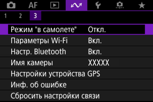 1. Выберите пункт [Функции связи: Режим "в самолете"].