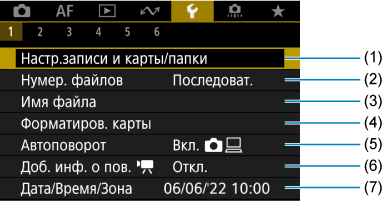 - (1) Настр.записи и карты/папки