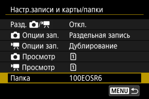 - Папка может содержать до 9999 изображений (номера файлов 0001–9999). Когда папка заполнена, автоматически создается новая папка с порядковым номером, увеличенным на единицу. Кроме того, новая папка создается автоматически при выполнении ручного сброса (). Можно создавать папки с номерами от 100 до 999.